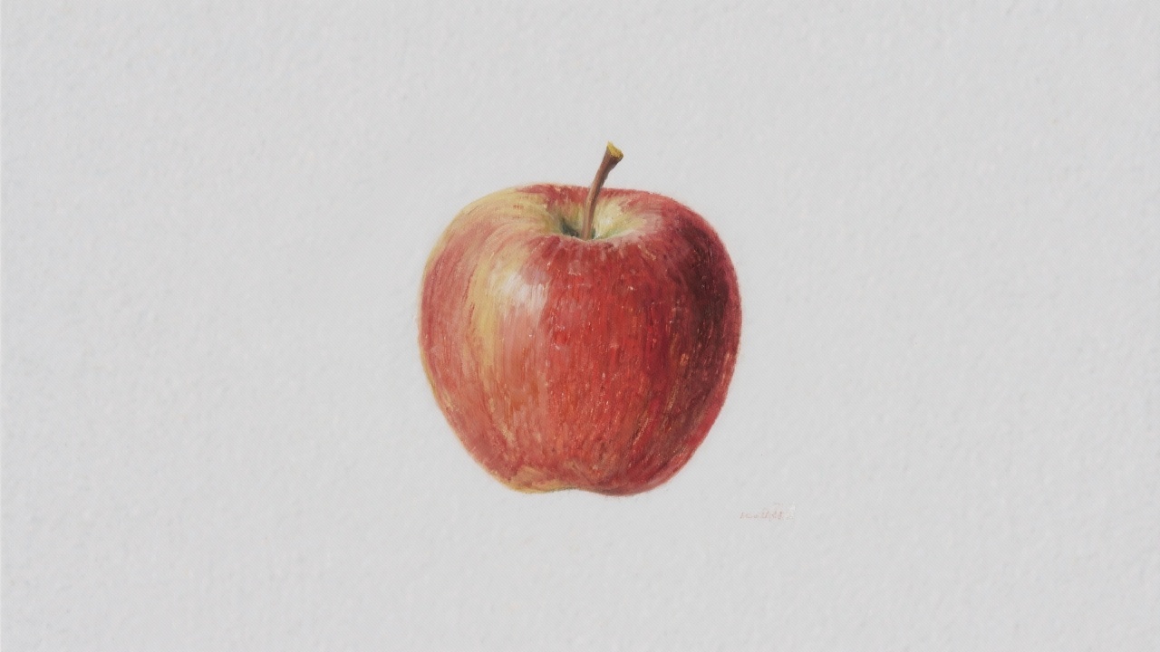 Prompt: an apple painted on a completely blank plain background