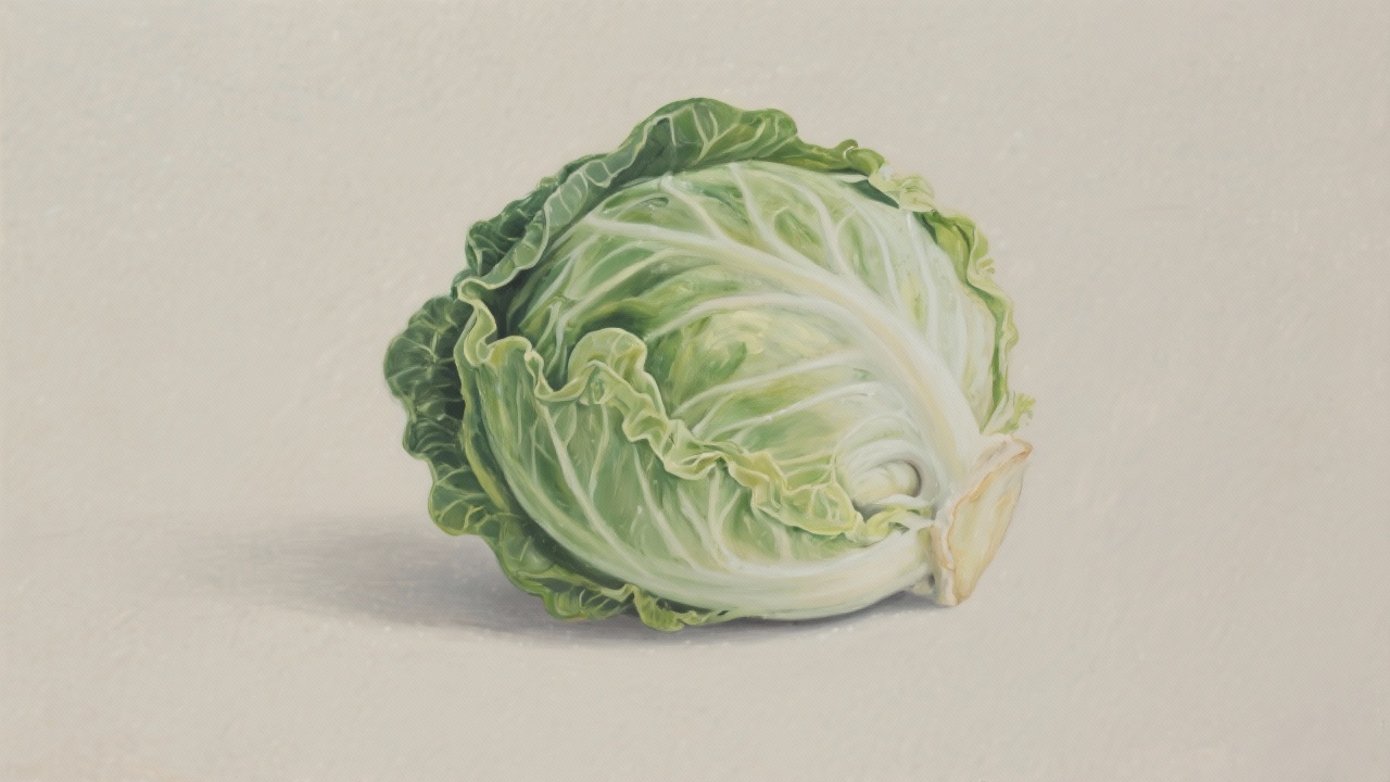 Prompt: a painting of Cabbage on a completely blank plain background