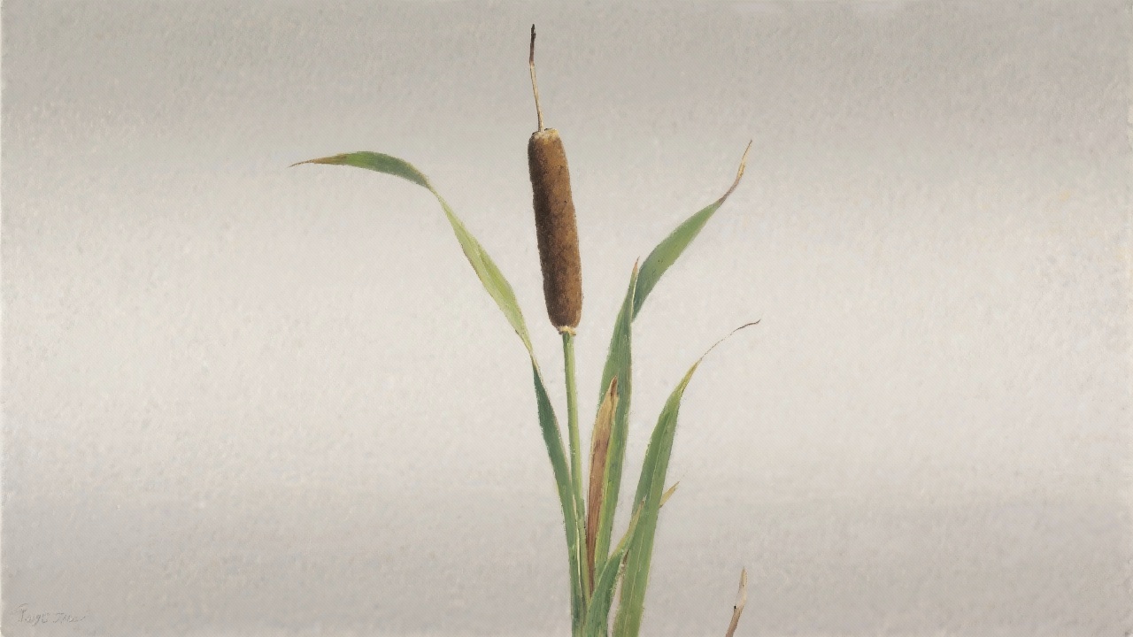 Prompt: a painting of Cattail,Typha latifolia (Common Cattail), on a completely blank plain background