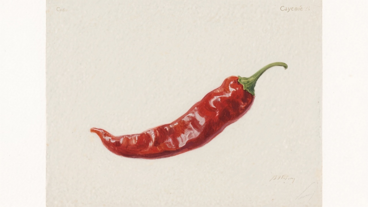 Prompt: a painting of Cayenne,Capsicum annuum var. cayenne, on a completely blank plain background