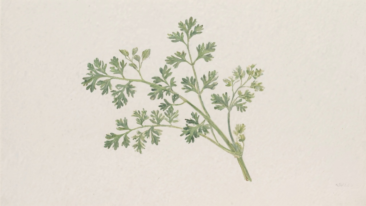 Prompt: a painting of chervil, Anthriscus cerefolium, on a completely blank background.