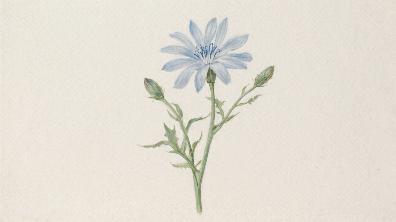 Prompt: a painting of chicory, Cichorium intybus, on a completely blank background.