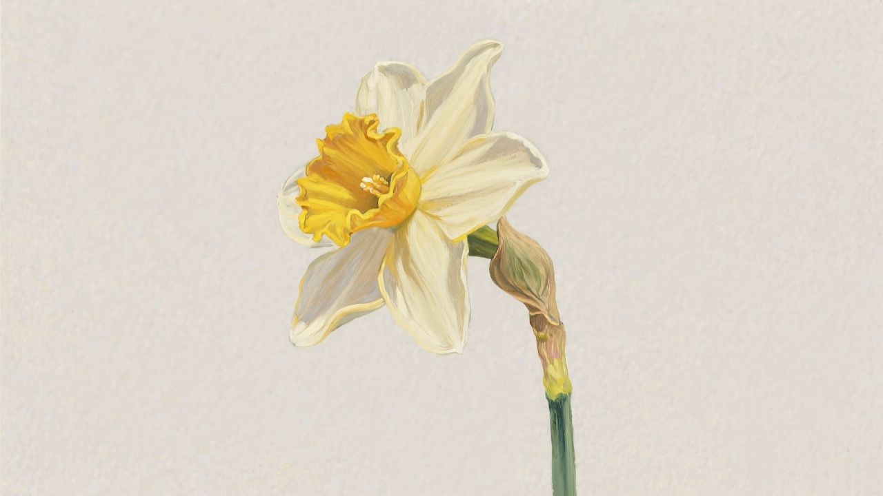 Prompt: a painting of a daffodil on a completely blank plain background.