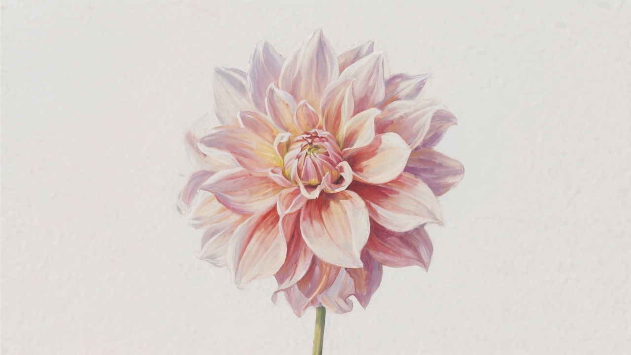 Prompt: a painting of a dahlia on a completely blank plain background.