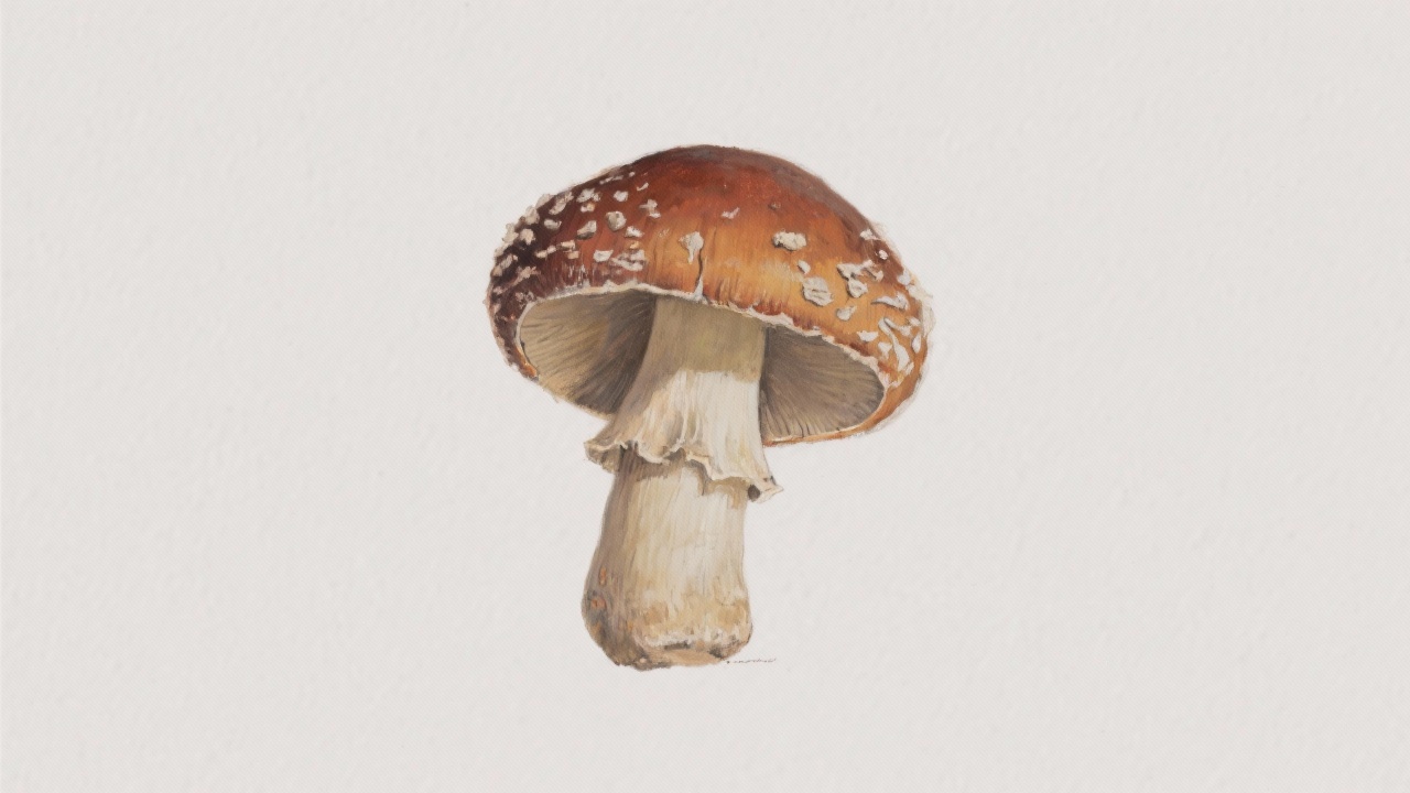 Prompt: a painting of a death cap mushroom, on a completely blank plain background.
