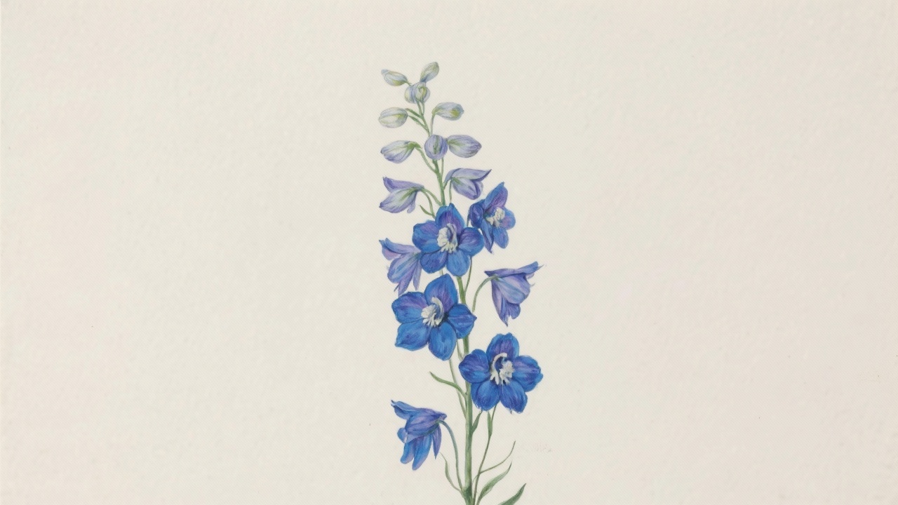 Prompt: a painting of delphinium, Delphinium spp., on a completely blank plain background.