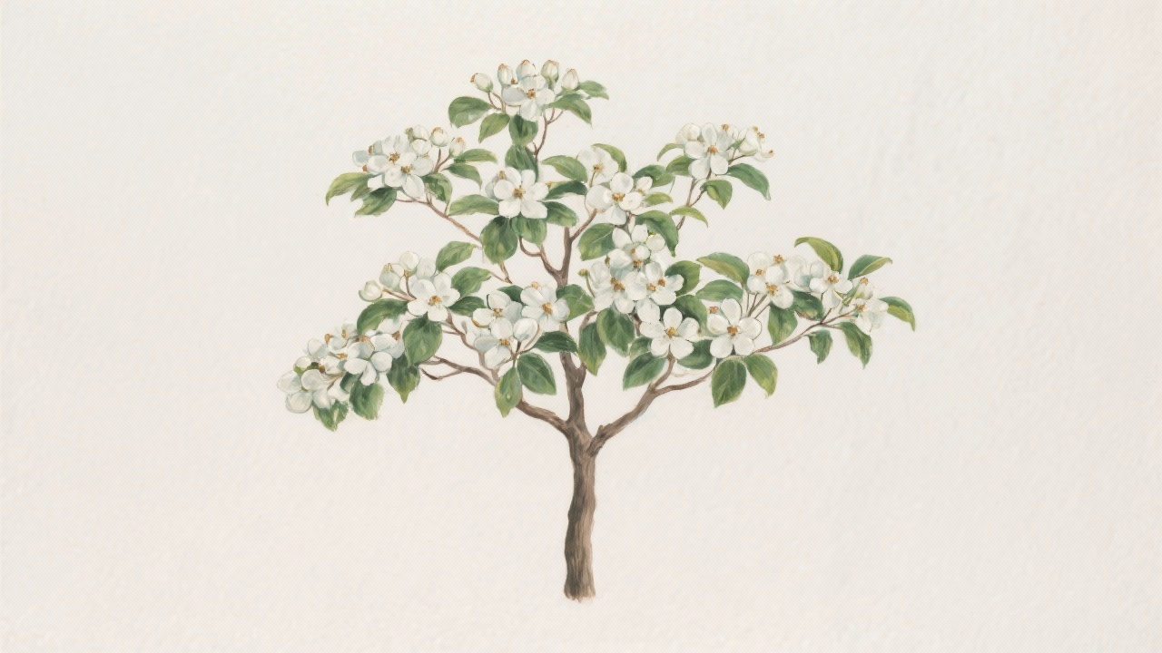 Prompt: a painting of a dogwood tree, Cornus spp., on a completely blank plain background.