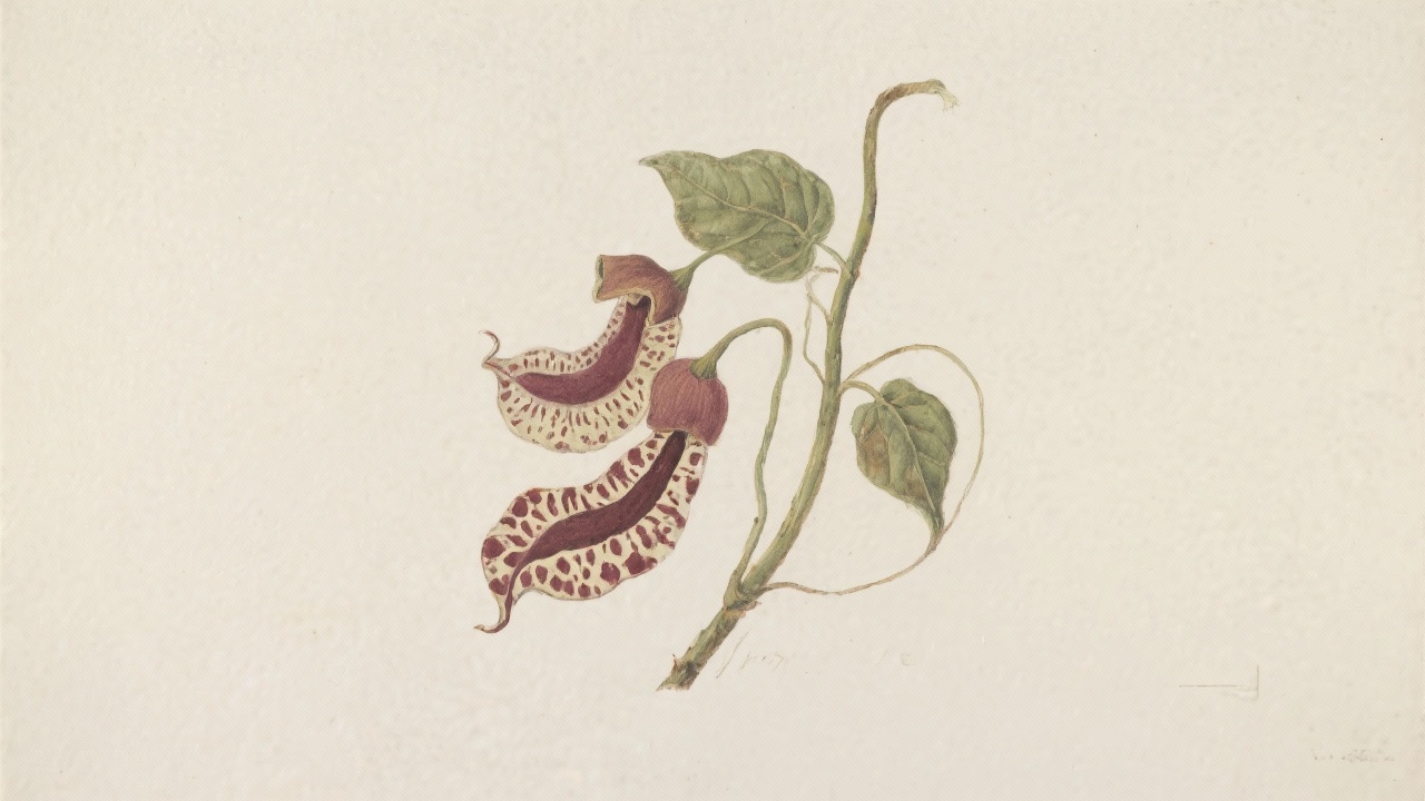 Prompt: a painting of Aristolochia spp., on a completely blank plain background.