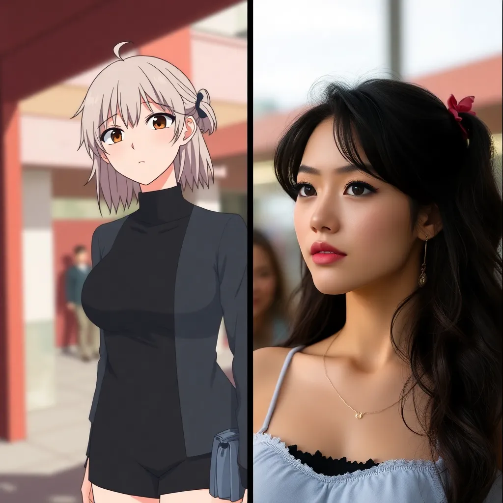 Prompt: change woman from anime to real life