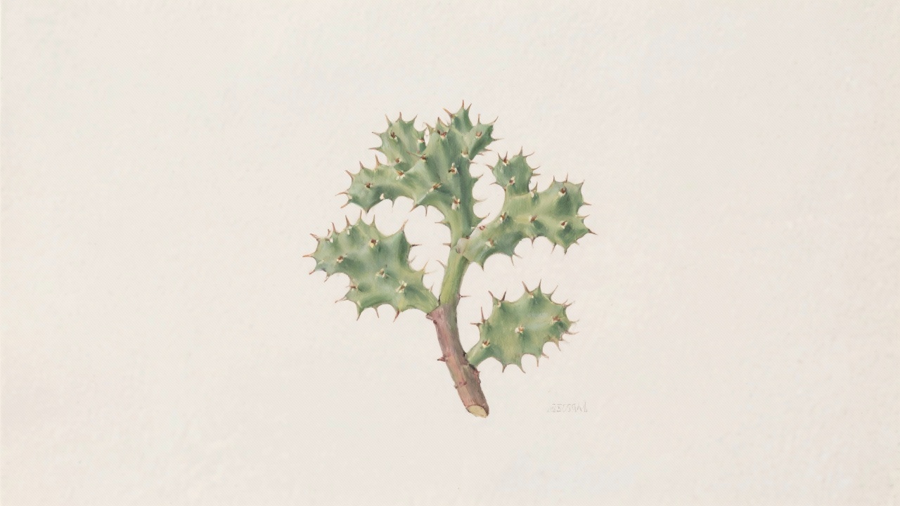 Prompt: a painting of spurge, Euphorbia spp., on a completely blank plain background.