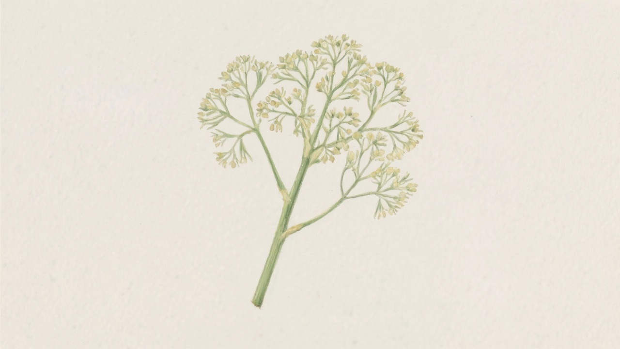 Prompt: a painting of fennel, Foeniculum vulgare, on a completely blank plain background.