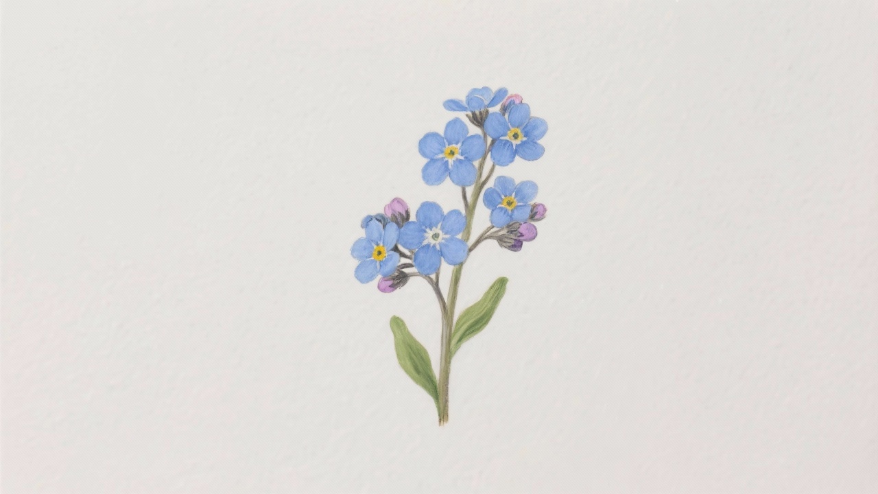 Prompt: a painting of forget-me-not, Myosotis spp., on a completely blank plain background.