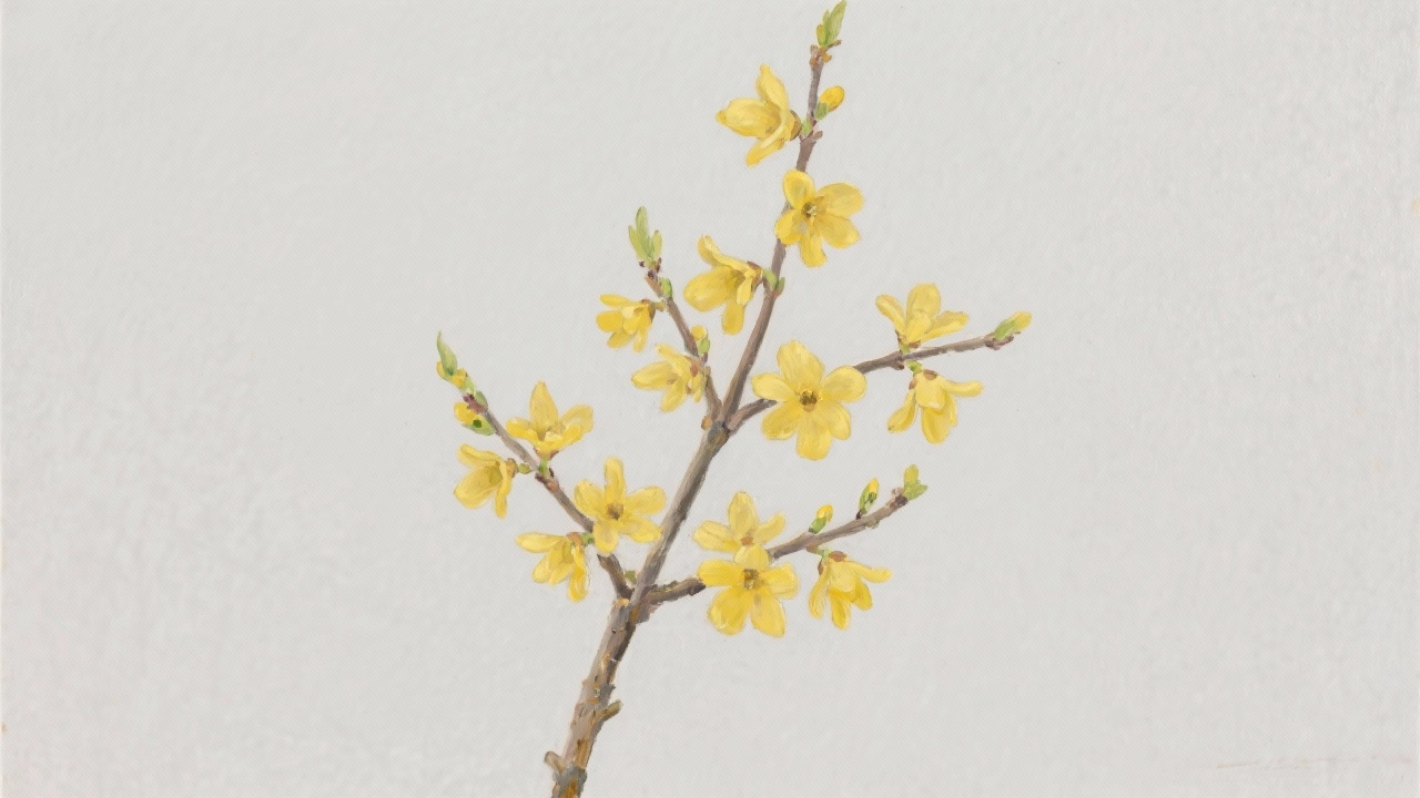 Prompt: a painting of Forsythia suspensa, on a completely blank plain background.
