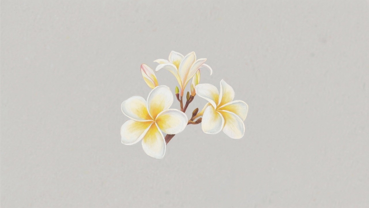 Prompt: a painting of frangipani flowers, on a completely blank plain background.