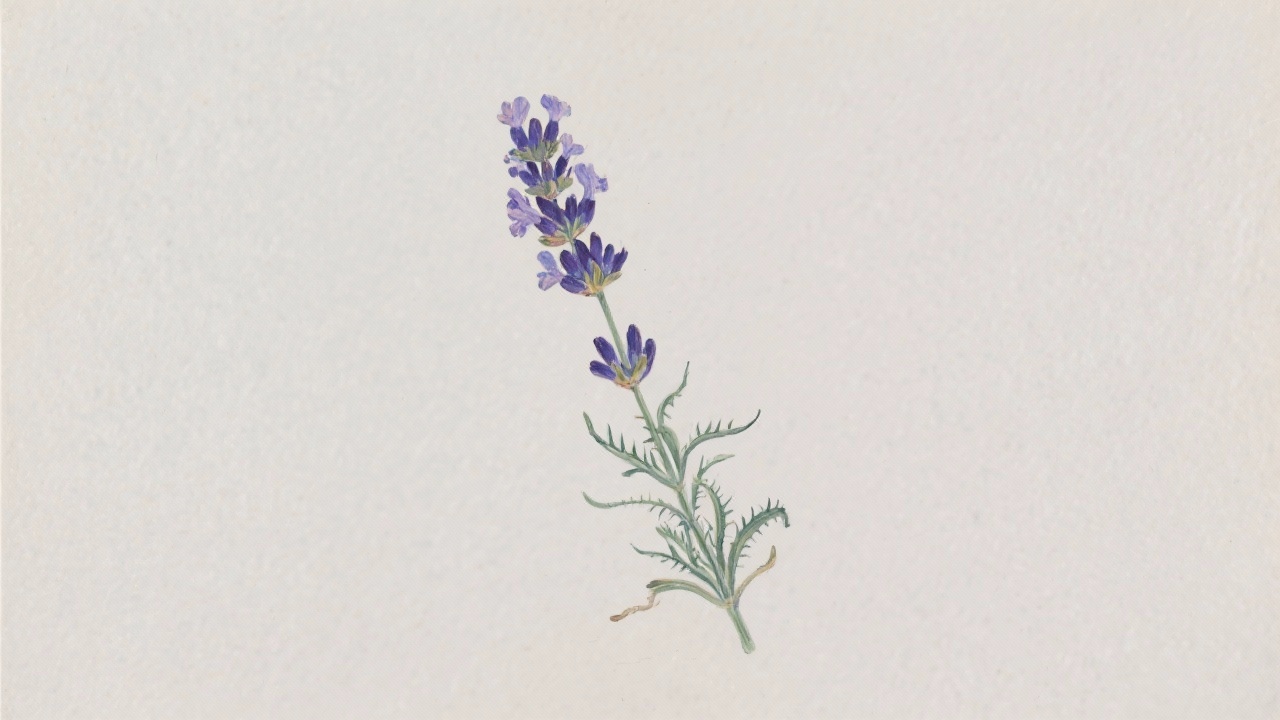 Prompt: a painting of a French lavendar, Lavandula dentata, on a completely blank plain background.