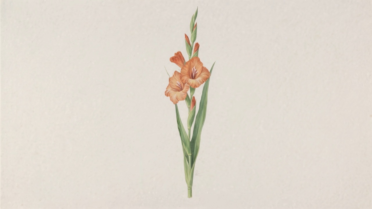Prompt: a painting of a Gladiolus spp., on a completely blank plain background.