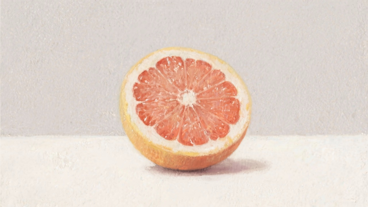 Prompt: a painting of a grapefruit, on a completely blank plain background.
