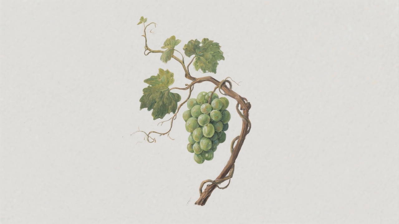 Prompt: a painting of a grapevine, on a completely blank plain background.