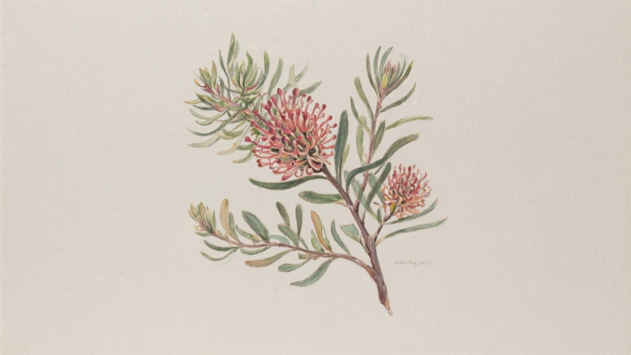 Prompt: a painting of Grevillea spp., on a completely blank plain background.