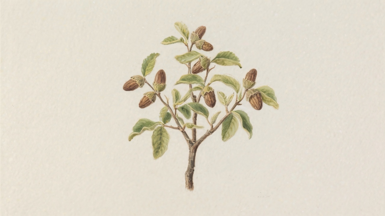 Prompt: a painting of a hazel tree, Corylus avellana, on a completely blank plain background.