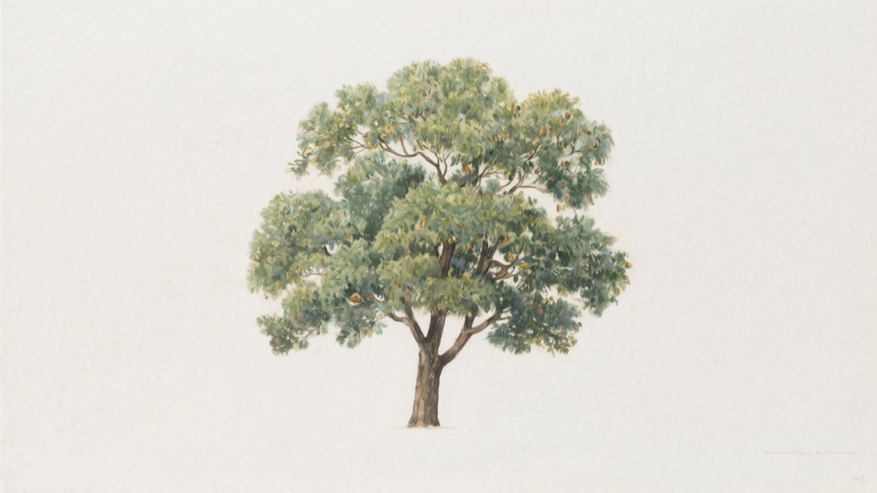 Prompt: a painting of the tree, Corylus avellana, on a completely blank plain background.
