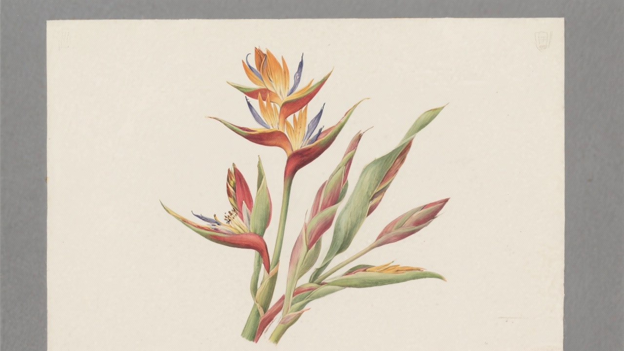 Prompt: a painting of Heliconia rostrata (and related Heliconia spp.), on a completely blank plain background.