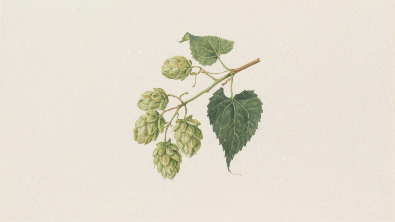Prompt: a painting of the plantHumulus lupulusb, on a completely blank plain background.