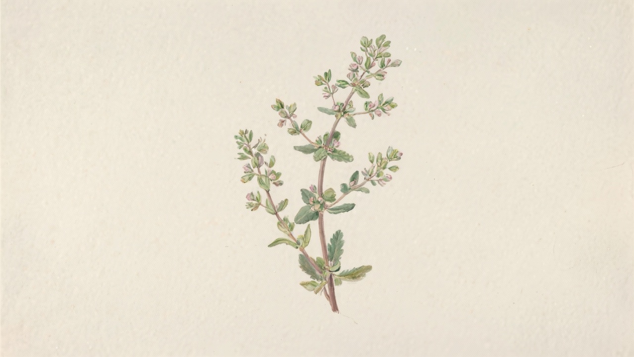 Prompt: a painting of horehound, Marrubium vulgare, on a completely blank plain background.