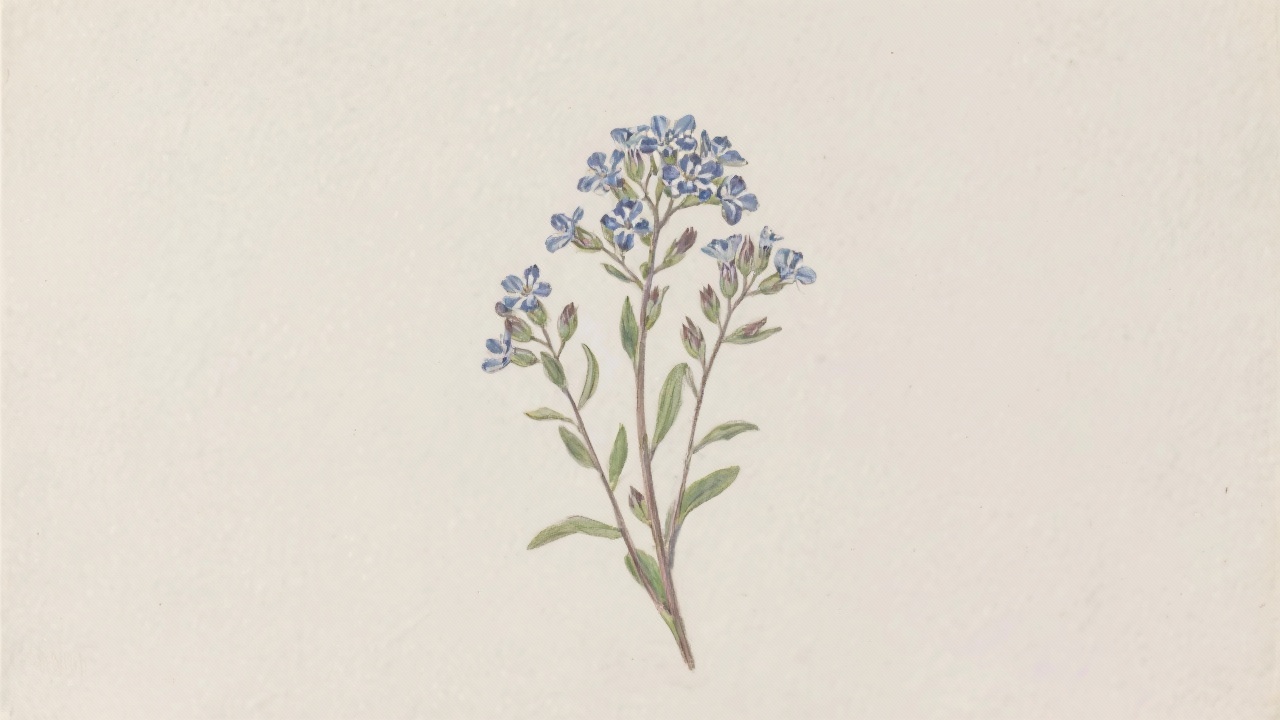 Prompt: a painting of houndstooth flowersCynoglossum officinale, on a completely blank plain background.