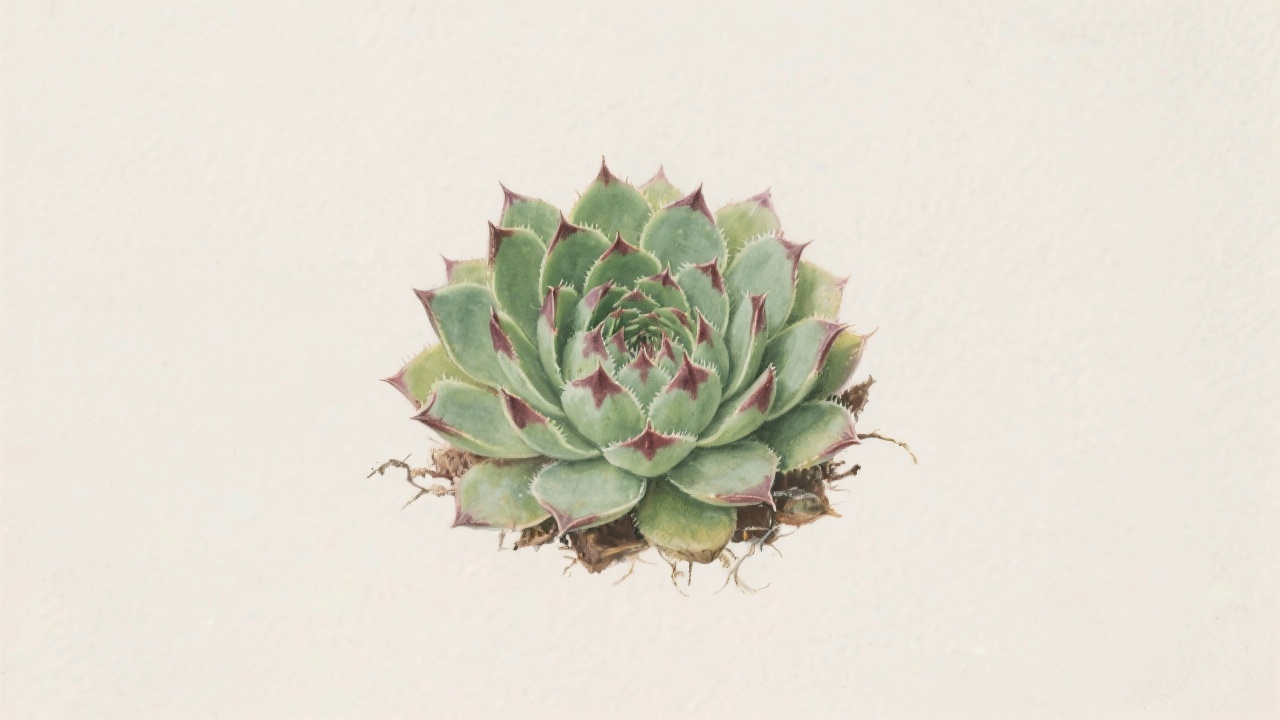 Prompt: a painting of a houseleek, Sempervivum tectorum, on a completely blank plain background.