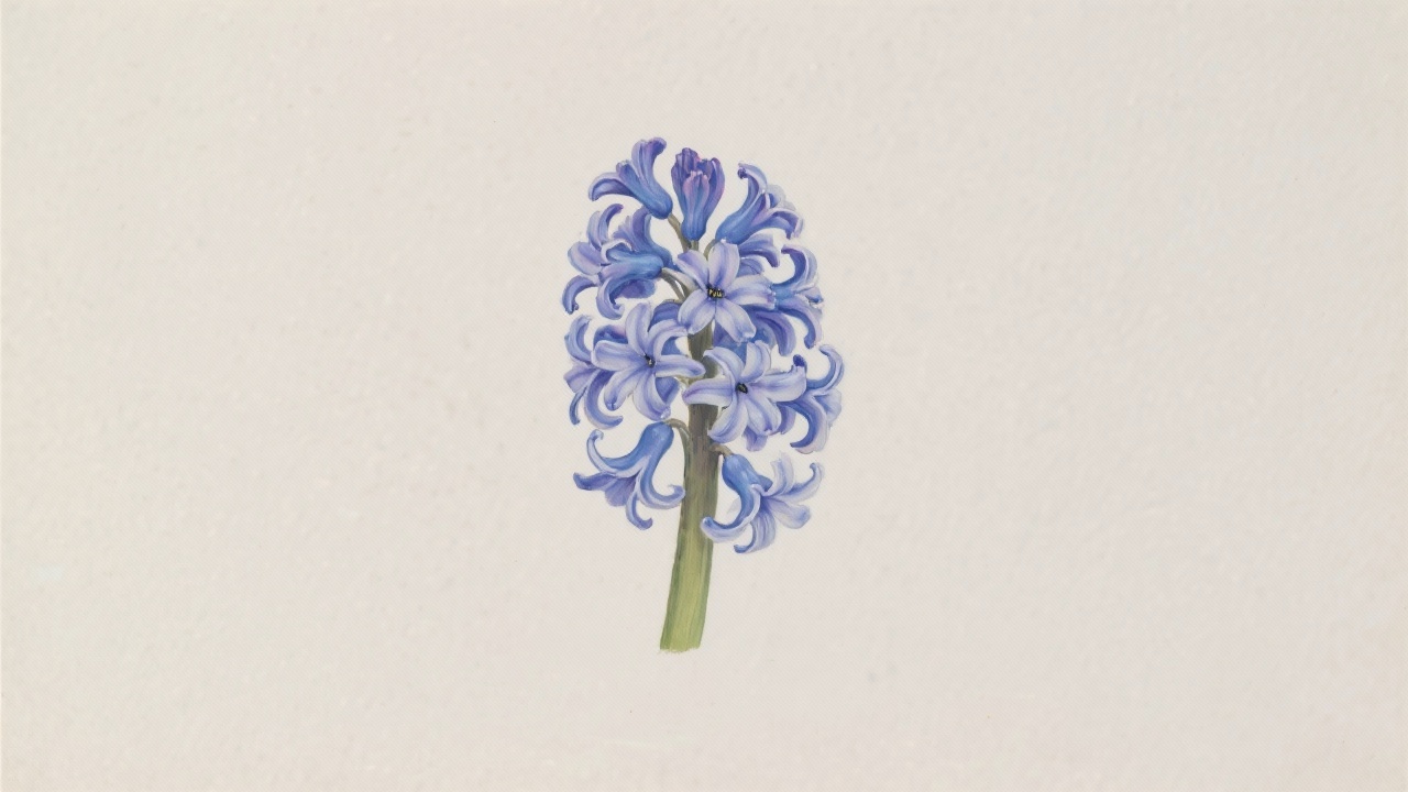 Prompt: a painting of a hyacinth flower, Hyacinthus orientalis, on a completely blank plain background.