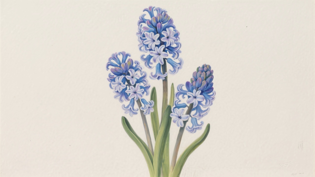 Prompt: a painting of hyacinth flowers, Hyacinthus orientalis, on a completely blank plain background.
