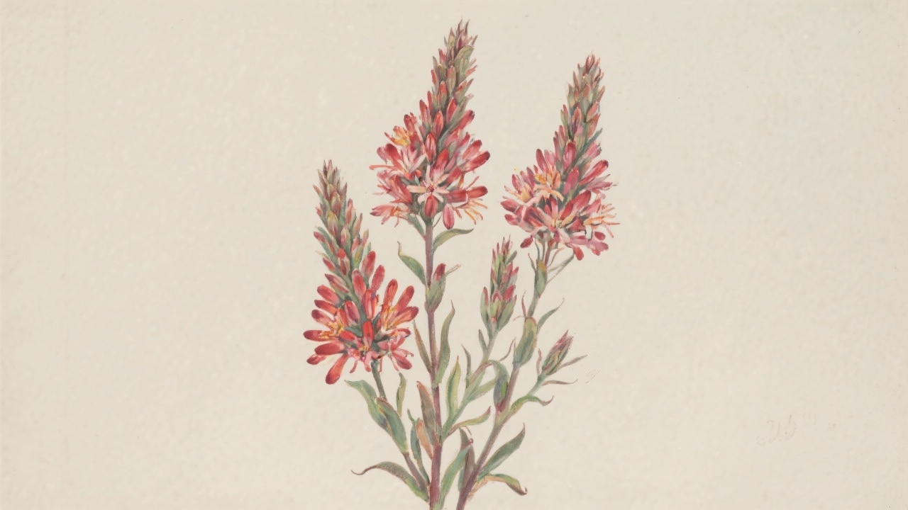 Prompt: a painting of indian paintbrush flowers,Castilleja spp., on a completely blank plain background.