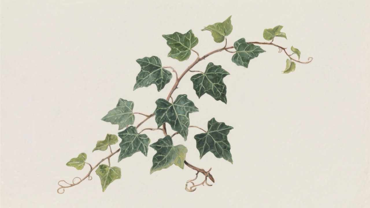 Prompt: a painting of ivy, Hedera helix (English Ivy), on a completely blank plain background.