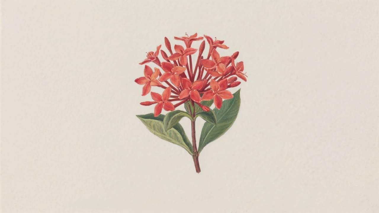 Prompt: a painting of Ixora coccinea, on a completely blank plain background.