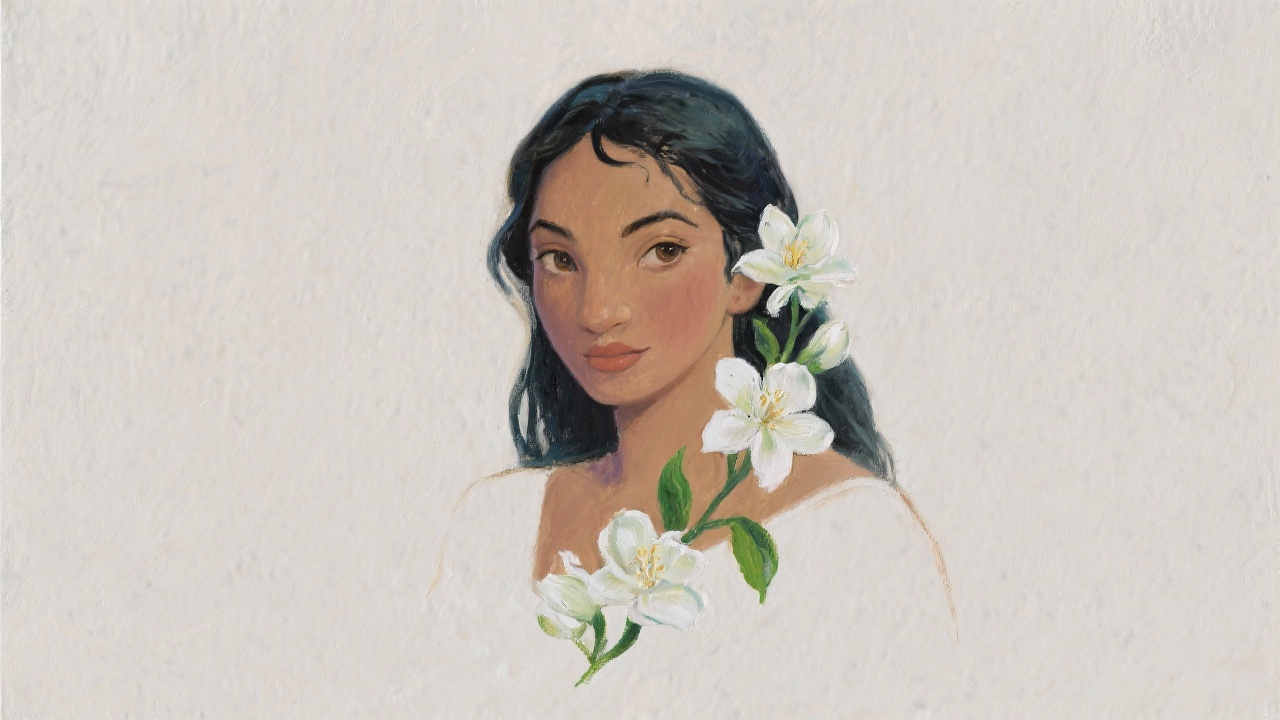 Prompt: a painting of Jasmine, on a completely blank background