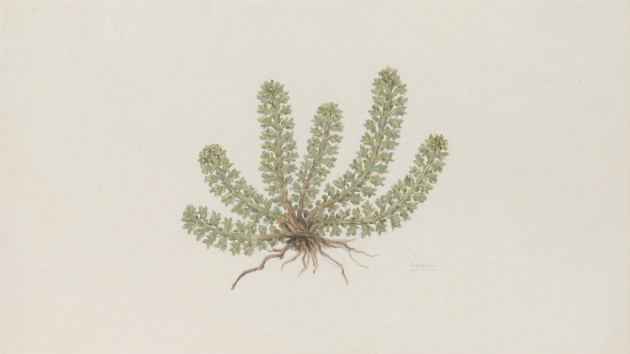 Prompt: a painting of Selaginella lepidophylla, on a completely blank background
