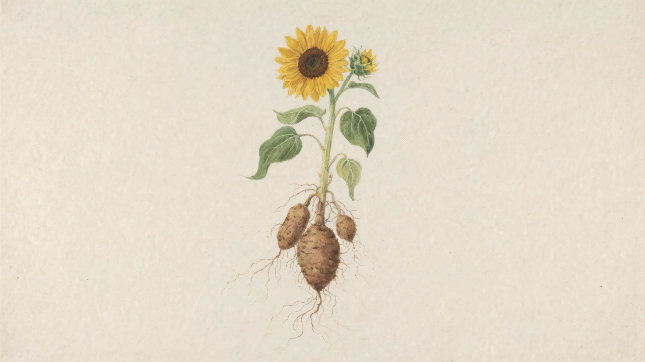 Prompt: a painting of Helianthus tuberosus, on a completely blank background