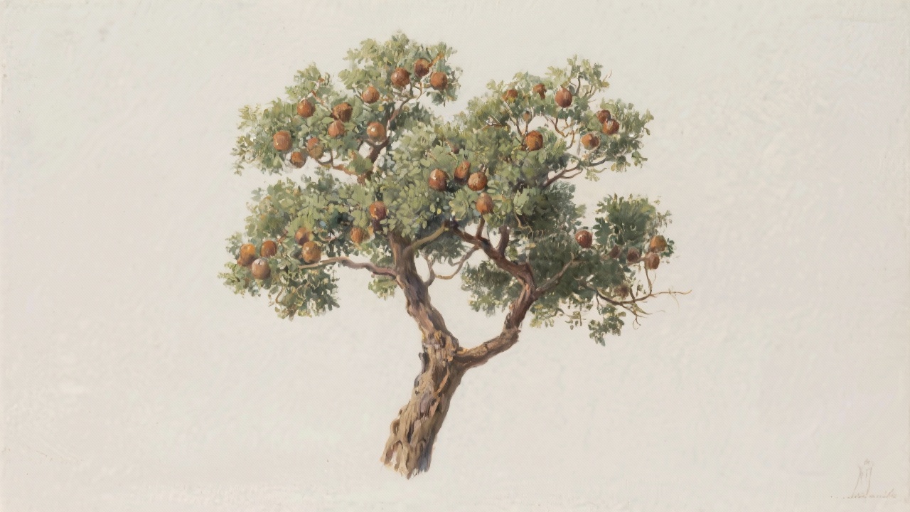 Prompt: a painting of a Jerusalem oak, on a completely blank background