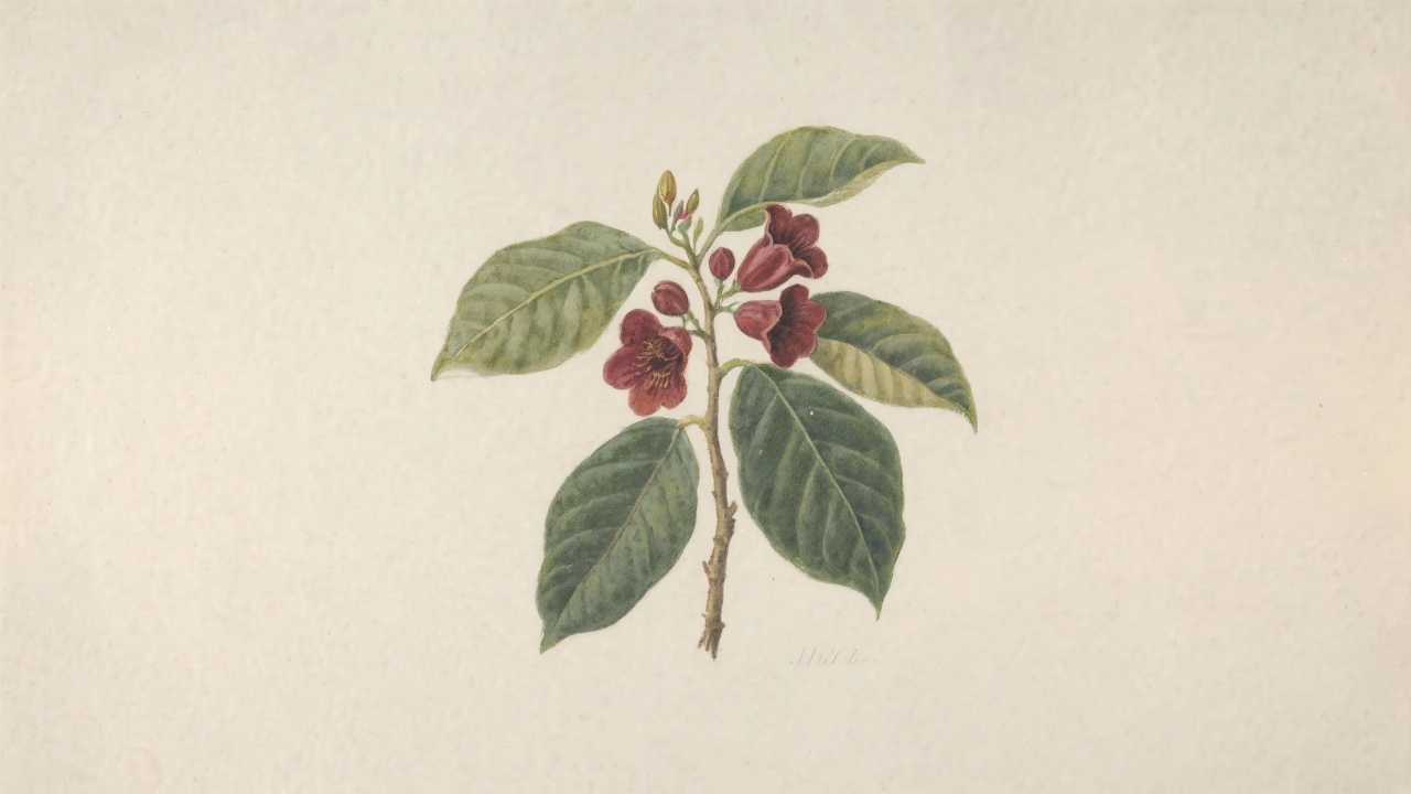 Prompt: a painting of Cinchona officinalis, on a completely blank background