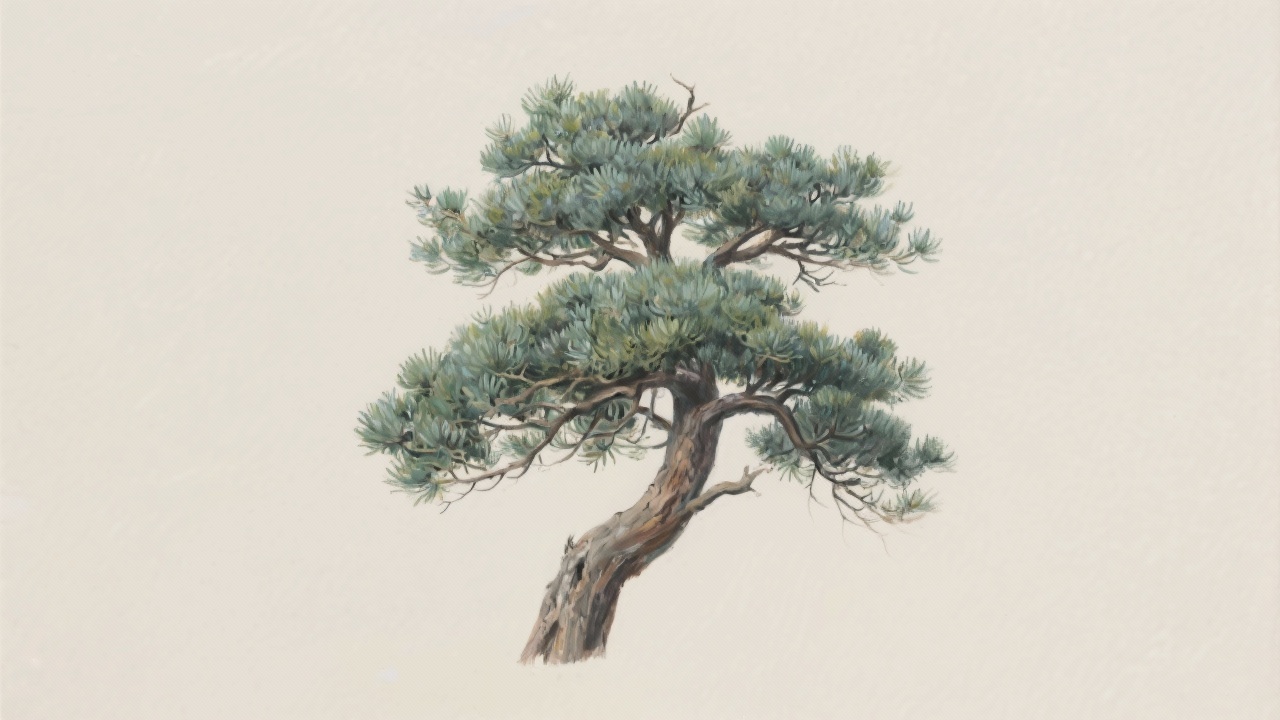 Prompt: a painting of a juniper tree, on a completely blank background