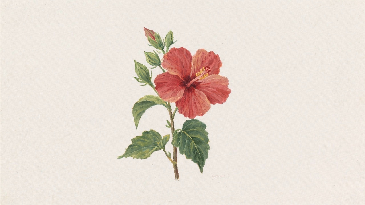 Prompt: a painting of Hibiscus cannabinus, on a completely blank background