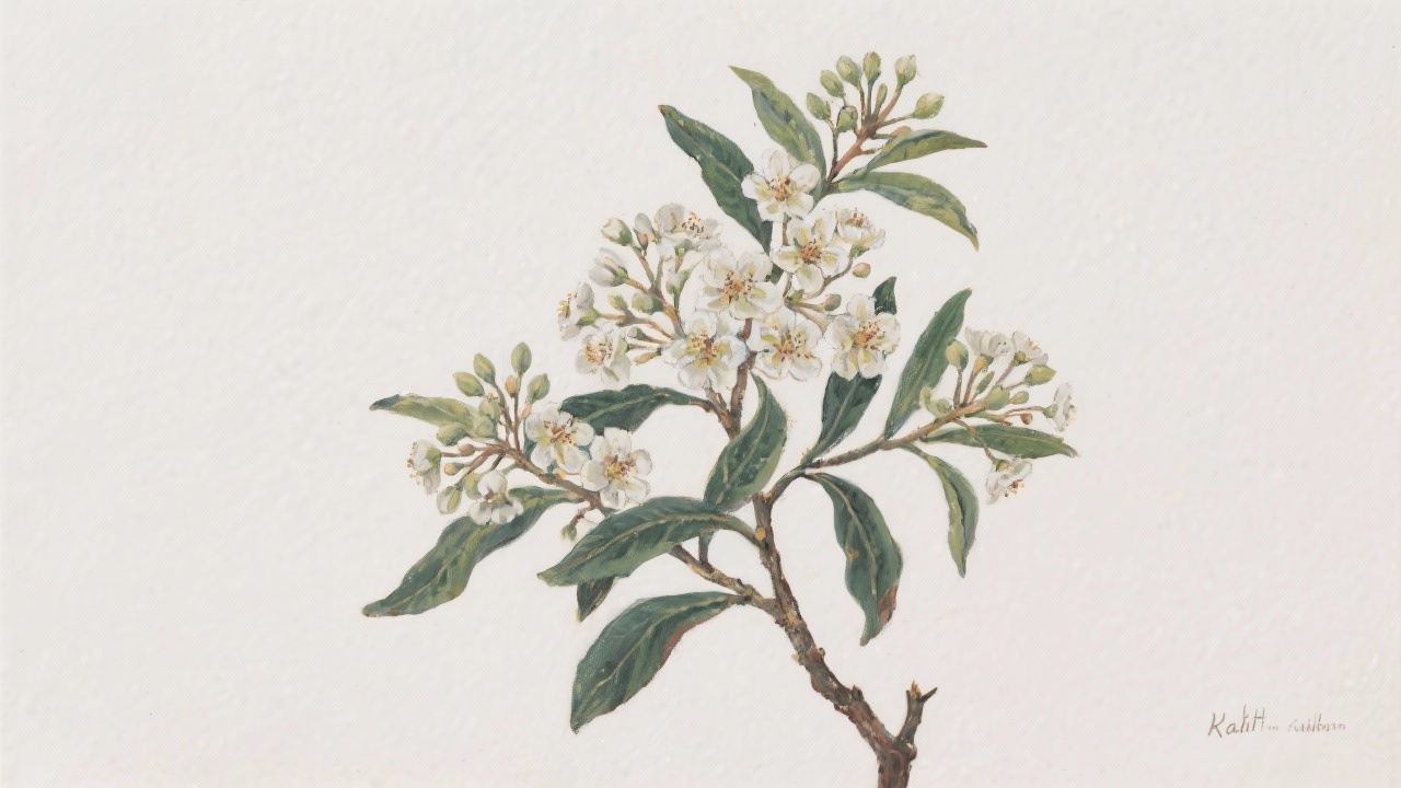 Prompt: a painting of Kaht with its flowers,Catha edulis, on a completely blank background