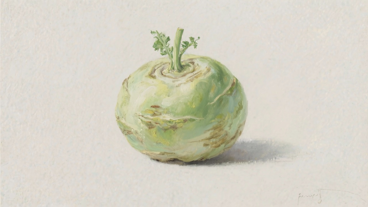 Prompt: a painting of a Kohlrabi, on a completely blank background