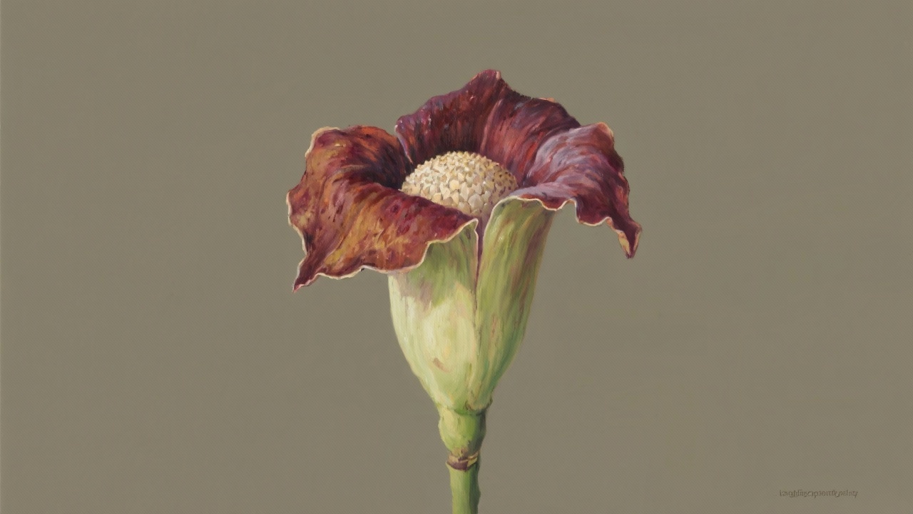 Prompt: a painting of the flowerAmorphophallus konjac, on a completely blank background