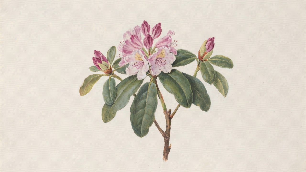 Prompt: a painting of Rhododendron groenlandicum, on a completely blank background