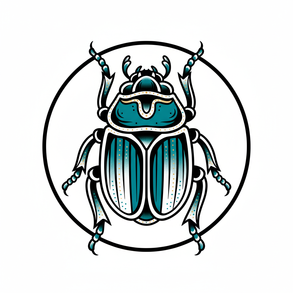 This tattoo embodies the ancient Egyptian scarab beetle, symbolizing rebirth, protection, and eternal life. It represents the cyclical nature of existence and personal transformation, serving as a powerful amulet for good fortune and renewal. The scarab's connection to the sun god Khepri further reinforces its meaning of creation and the rising sun.