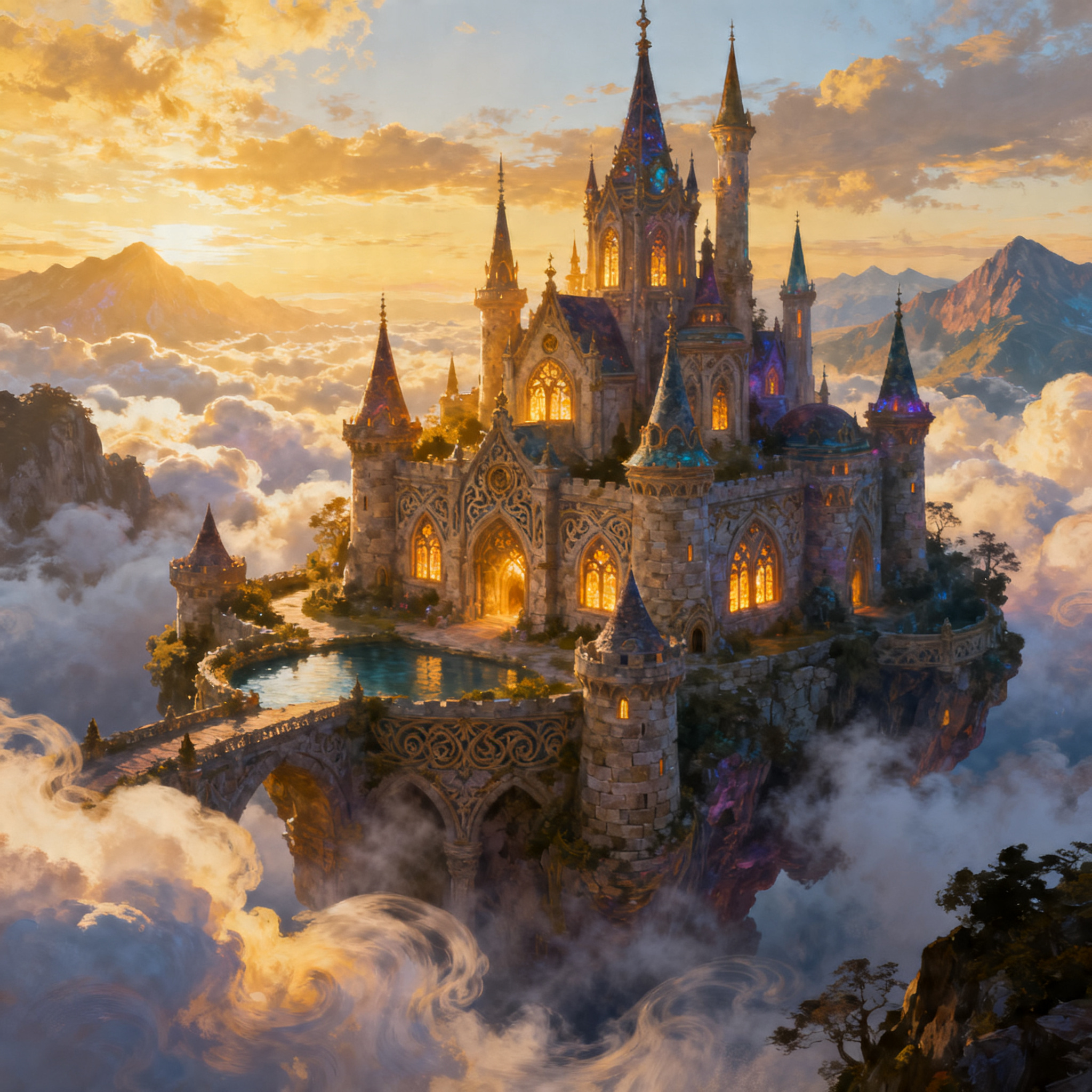 Prompt: A magical castle floating in the clouds, fantasy art, highly detailed