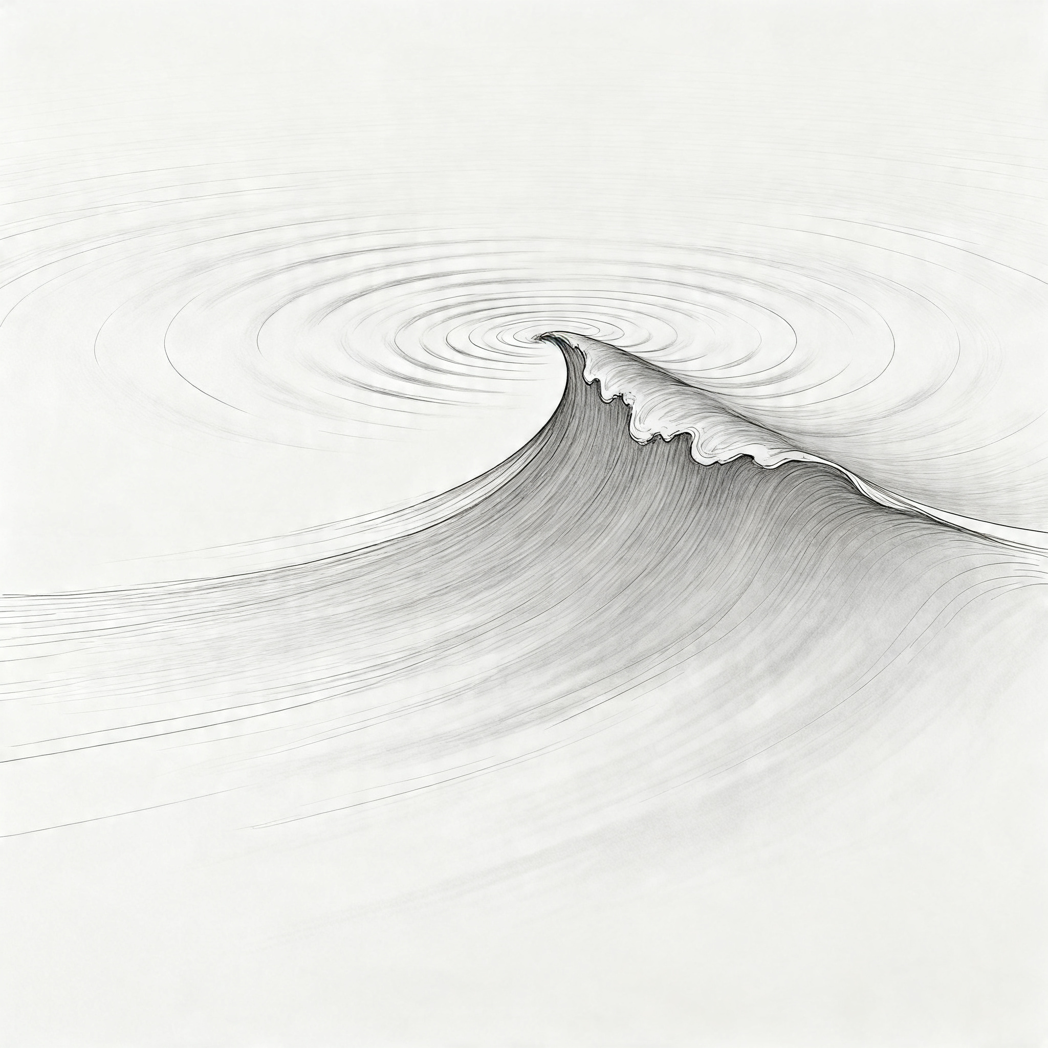 Logo Concept: This logo concept visualizes the essence of 'ineffable' through a subtle, expanding ripple. The ripple represents an experience or feeling that is profound and impactful but difficult to fully grasp or articulate, much like the word itself. The fading lines suggest the challenge of putting such feelings into words, while the clean, flowing design maintains a sense of elegance and mystery suitable for a t-shirt brand that aims to convey depth and unique expression without overt imagery.