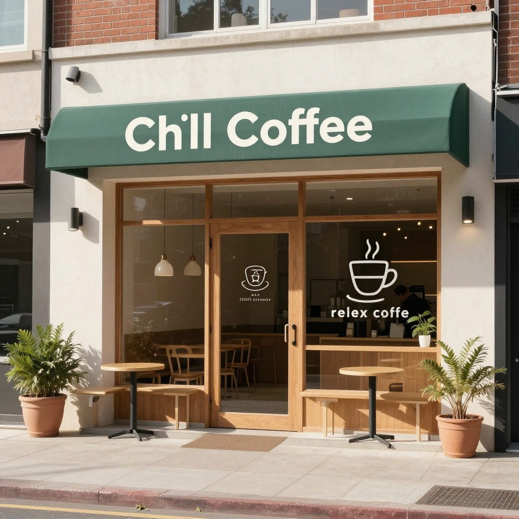 Prompt: Logo for a brand new coffee shop. chill and relax vibes